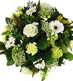 White roses, daisies and more are accented with greens in a pretty bouquet. Bouquet will arrive wrapped, ready for the recipient’s favorite vase.