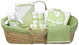 Tadpoles Cable Knit Moses Basket Gift Set, Sage.